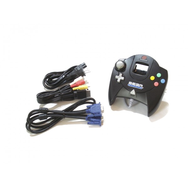 Console livrée avec Boite et Notice, Pad Sega Sports d'origine, Câble VGA, Câble AV + Audio Stéréo, Câble d'alimentation 110V, et le jeu Chuchu Rocket en loose offert.