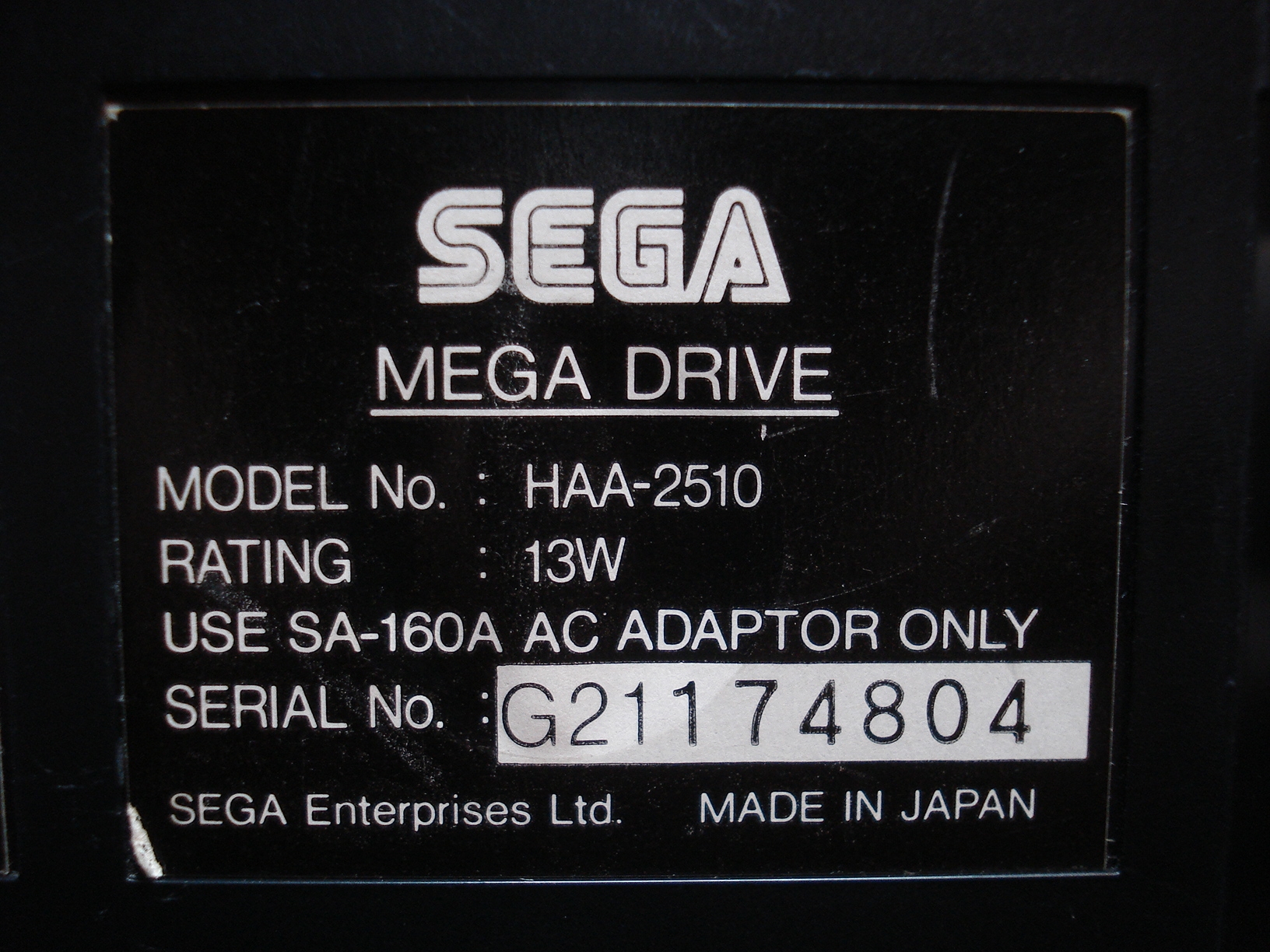 Sega Megadrive HAA-2510 (Japonaise) avec 1 Pad, Alimentation Secteur 220V, et Câble Vidéo RGB Stéréo.